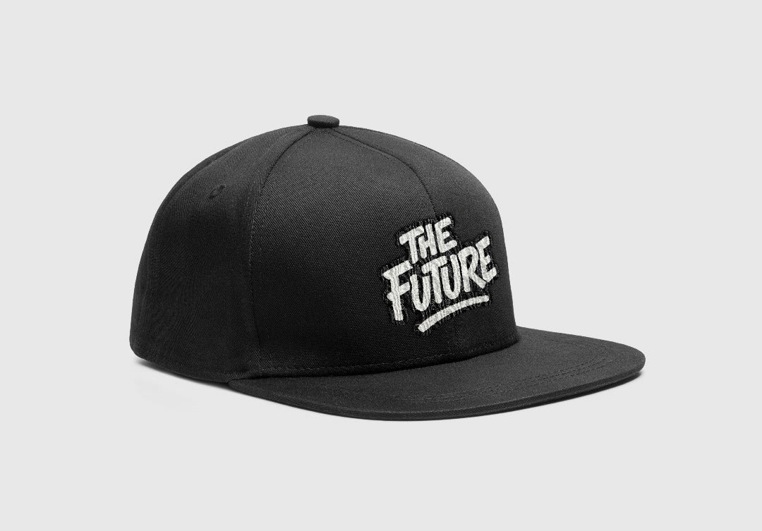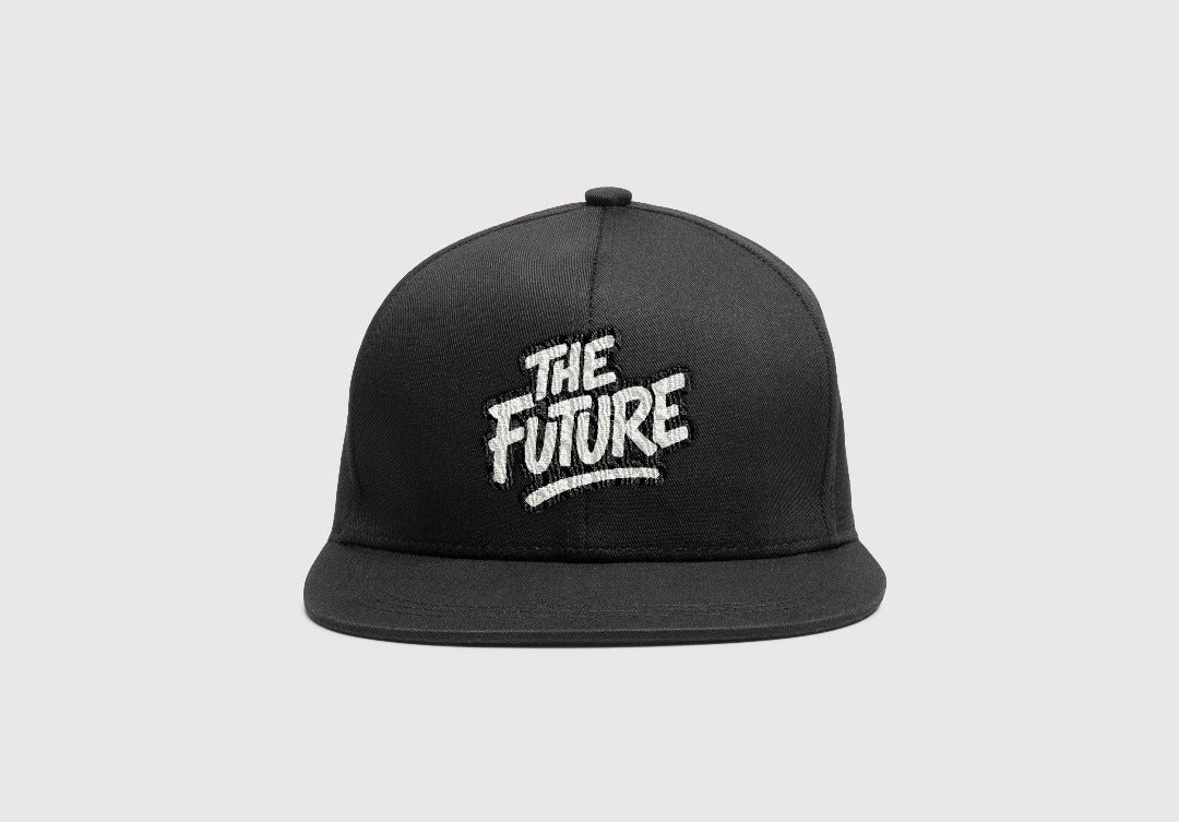 Bold embroidered “THE FUTURE” in graffiti-style lettering.